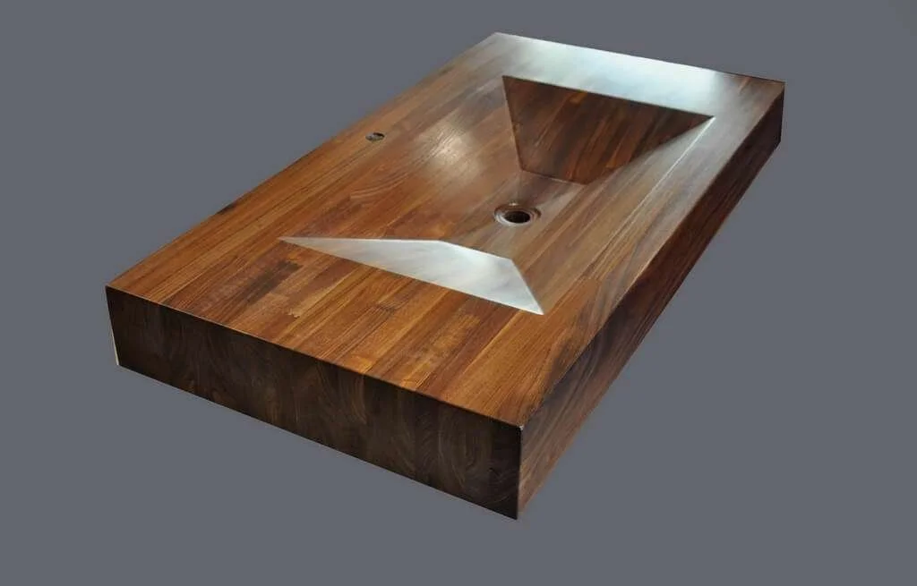 Showroom Display Furniture › Walnut Edge Grain integral sink Image 1 of 2 Image 2 of 2 Walnut Edge Grain integral sink $800.00 Epoxy filled Walnut integral sink unit.Waterproof. We have made many of these.9” thick x 48” x 22”Normally $6500 Add To Cart Added! Epoxy filled Walnut integral sink unit.Waterproof. We have made many of these.9” thick x 48” x 22”Normally $6500
